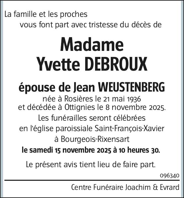 Le mercredi 12 novembre 2025 en l’église paroissiale Saint-Sixte à Genval à 14 heures (Condoléances à partir de 13 heures 30)