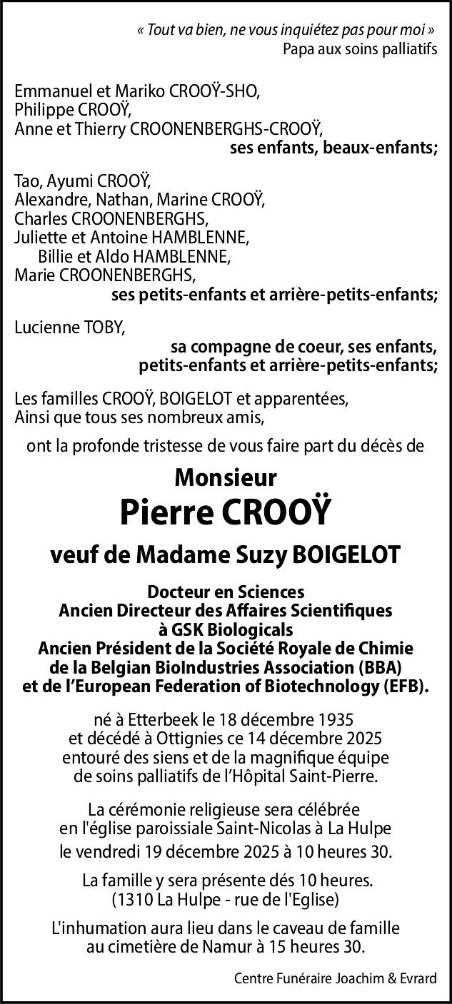 Le vendredi 19 décembre 2025 en l’église paroissiale Saint-Nicolas à La Hulpe à 10 heures 30. (Condoléances dés 10 heures)
